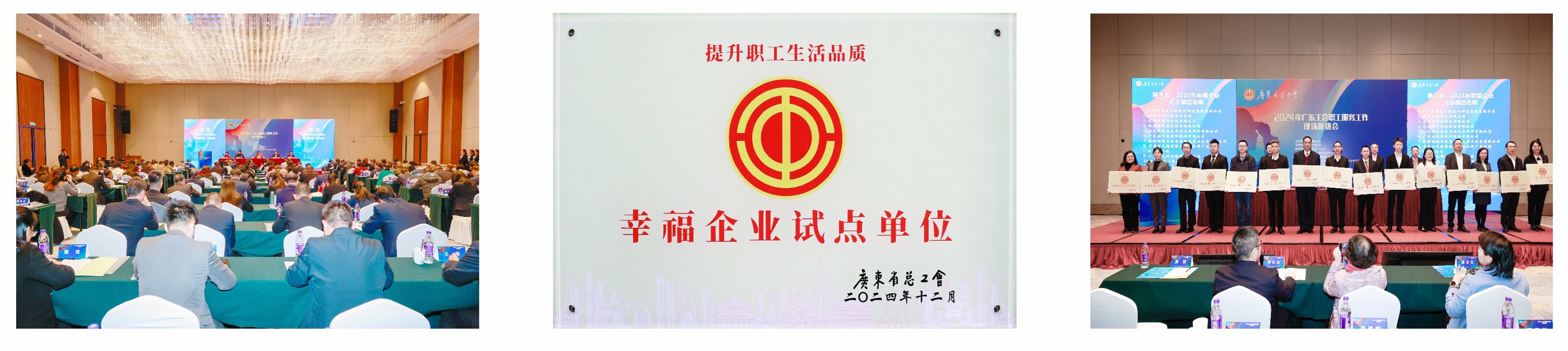 会上,经省总党组会议研究决定,对在提升职工生活品质工作中表现突出的单位进行表彰。其中,10家单位荣获广东第三批提升职工生活品质服务职工综合体试点单位称号,30家单位获评广东第三批提升职工生活品质幸福企业试点单位。我司凭借在职工服务领域的接触表现,荣获“广东省2024年幸福企业试点单位”称号。