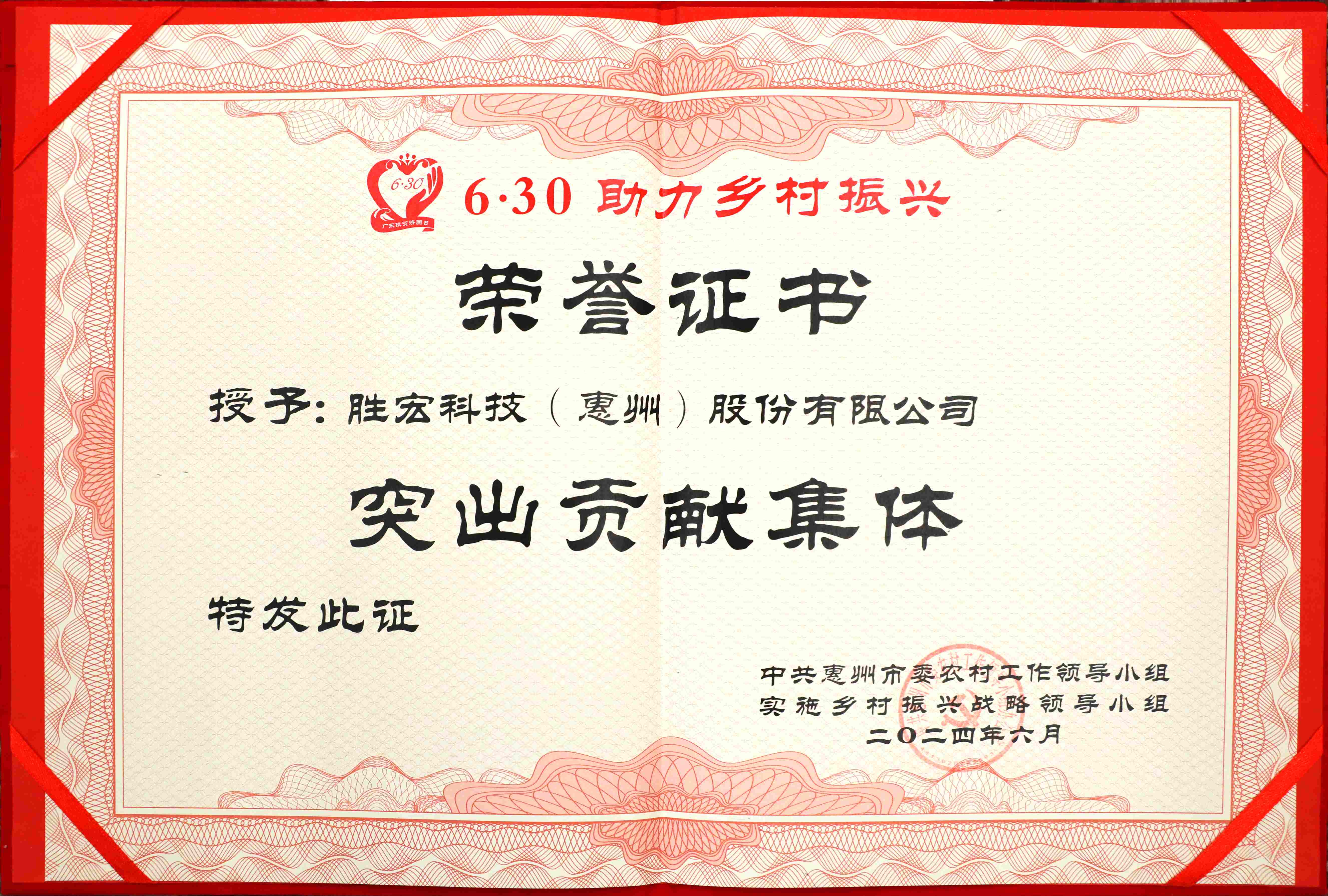 NG娱乐科技荣获“惠州市2023年度‘6·30’助力乡村振兴突出贡献集体”奖