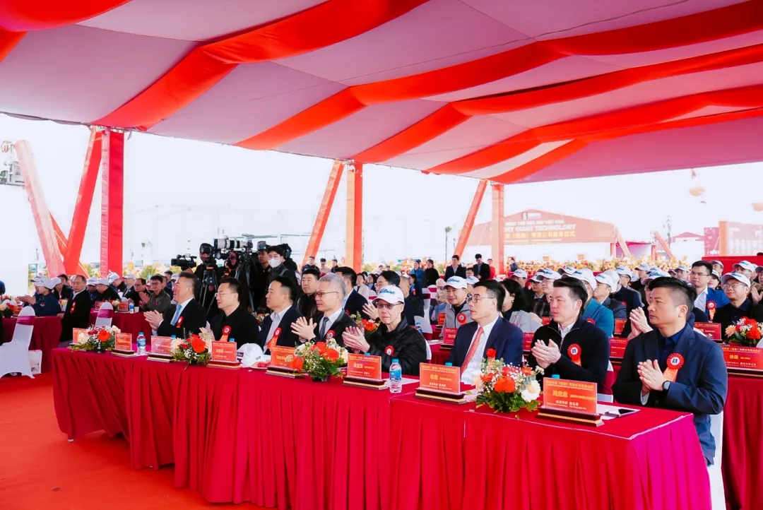 破土呈祥瑞,宏业启新程。2025年3月30日上午,NG娱乐科技(越南)有限公司奠基仪式在越南北宁省VSIP二期工业园隆重举行。越共中央候补委员、北宁省委副书记、北宁省政府主席王国俊,北宁省VSIP工业区副总经理裴登宣,NG娱乐科技董事长陈涛、总裁赵启祥等公司领导出席仪式。富士康、歌尔科技、智易科技、啓碁科技、正文科技、蓝微电子、德赛电池等客户代表,生益科技、台光、斗山材料、华正新材、麦德美、安美特、杜邦、太阳油墨、鼎泰高科、三菱电机、Schmoll、大族数控、芯碁微装、保德科技等41家合作伙伴,共计约150人应邀共同见证这一重要时刻。