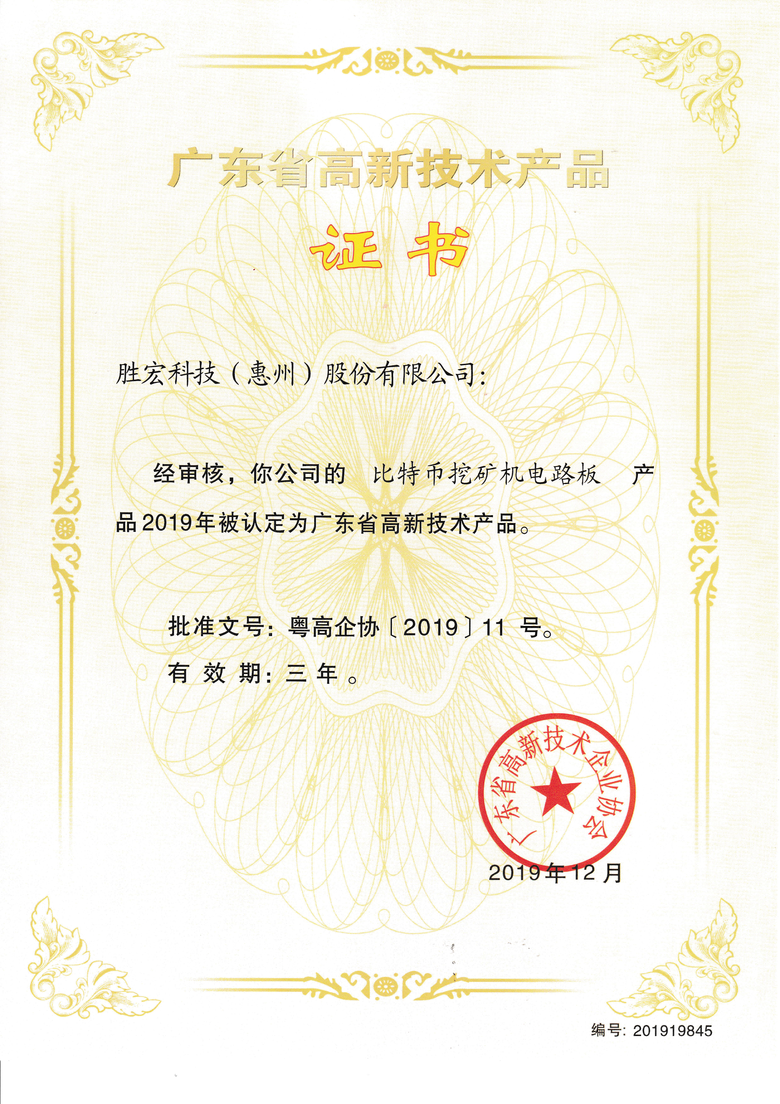 “高频HDI埋嵌铜块电路板”名优高新技术产品证书